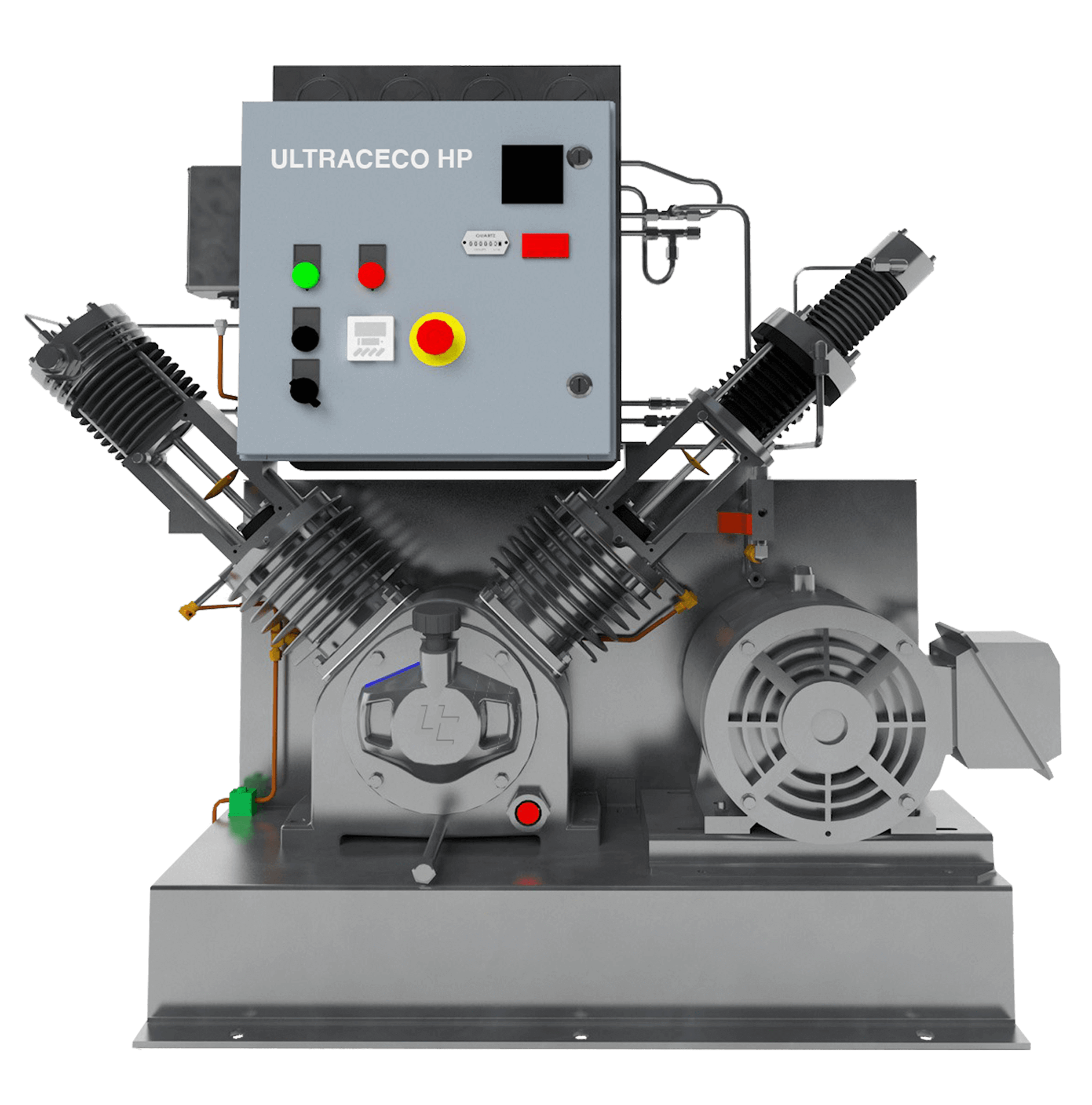 Compresseurs de la série 2V de RIX Industries, conçus pour un fonctionnement continu 24 heures sur 24, 7 jours sur 7, dans les secteurs industriel, médical et énergétique. Compression de gaz à haute pression distribuée au Portugal par Ultra Controlo.